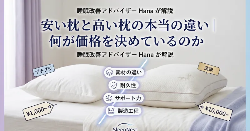 安い枕と高い枕の違いは、主に素材の品質・耐久性・設計への投資の違いです。