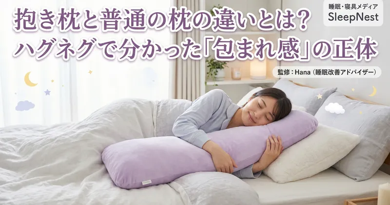 抱き枕と普通の枕は、役割がそもそも違います。この記事では、その違いと「包まれ感」が睡眠にどんな効果をもたらすのかを解説します。