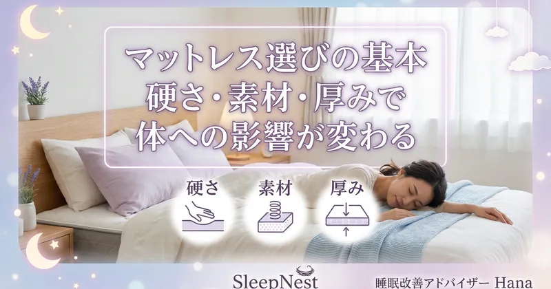 枕ほど注目されませんが、マットレスは睡眠の質に大きく影響する寝具のひとつです。硬さ・素材・厚みを理解してから選ぶと、失敗が減ります。
